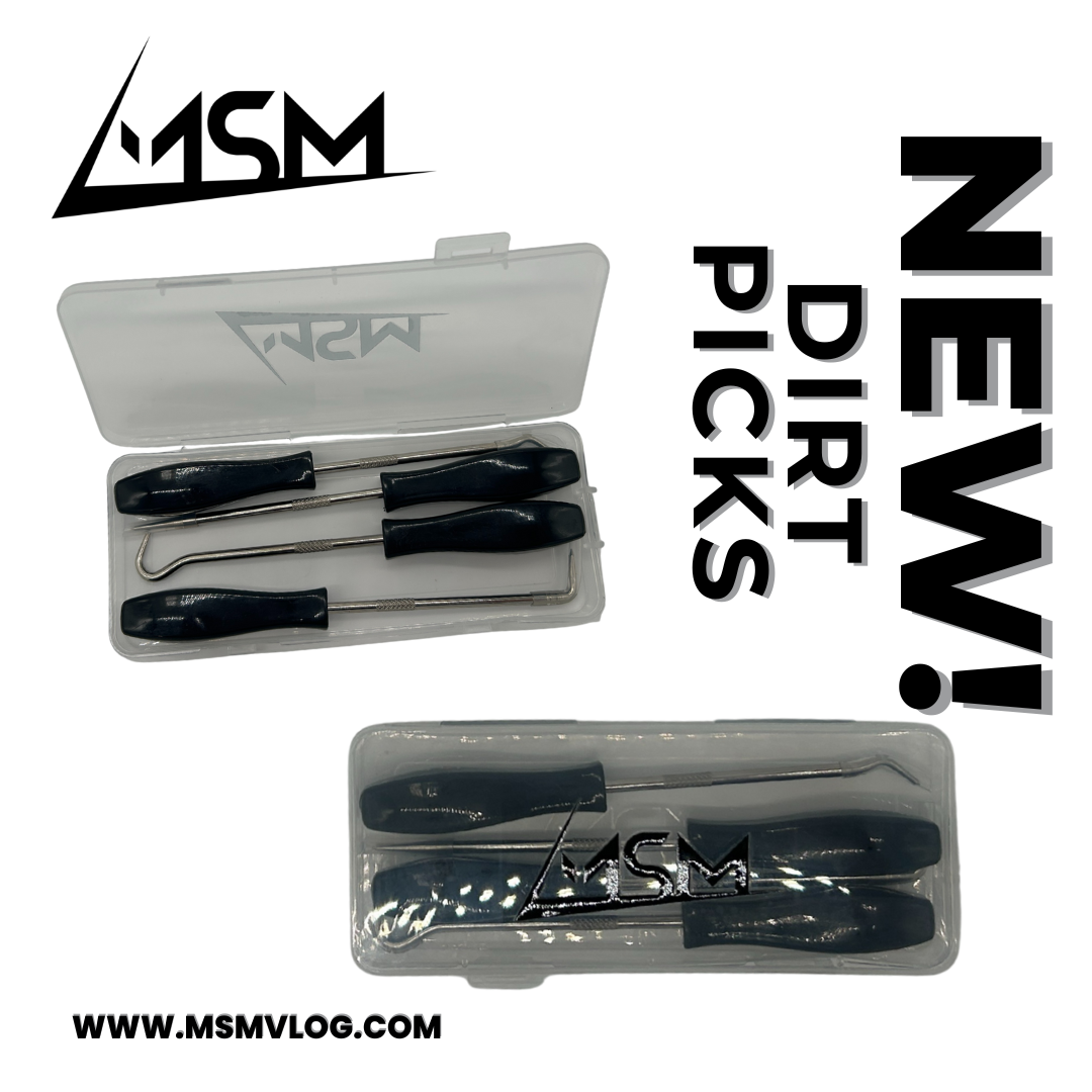 The MSM Dirt Picks is something every off-road RC car needs! Mainly because every off-road RC car collects dirt. Especially in those screw heads. Mark used to rely on an X-Acto knife, but the blades snap way too easily. Mark wanted something durable and with black handles to match his existing tool sets. Introducing the MSM dirt picks, sleek black, neatly packed in a durable case.
