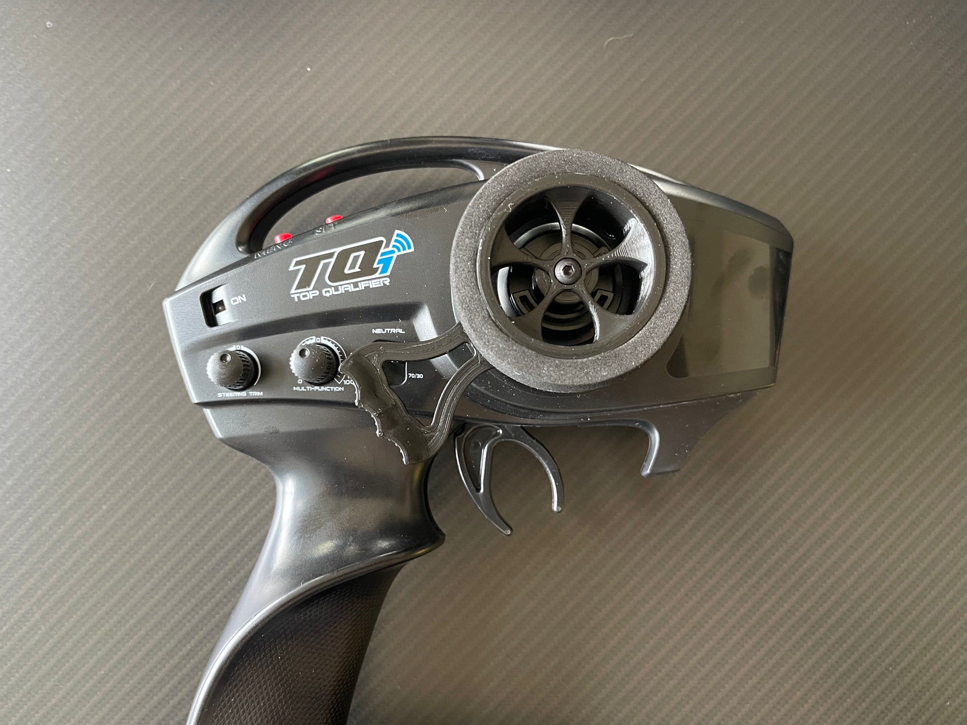 Version II features 3 different thumb positions to accommodate different hand sizes without obstructing any of the multifunction knobs on your Traxxas TQ/TQi radio.